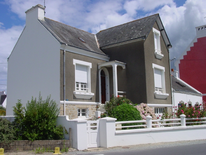 3 rue de Penester (AE 841) : plan en L à rez-de-chaussée surélevé, escalier extérieur avec porche en béton armé.Immatriculation
