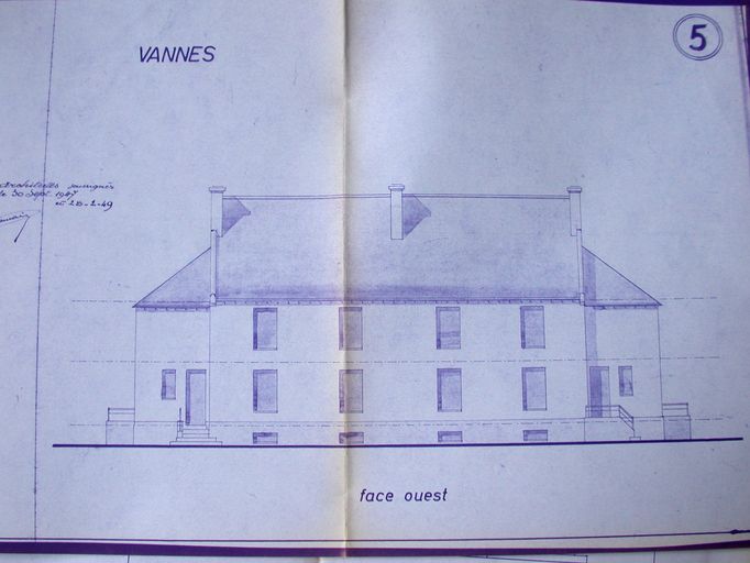 Groupe Poignant Lenoble, élévation ouest, signée E. Gemain, 28 février 1949. Doc. OPHLM, Vannes.Immatriculation