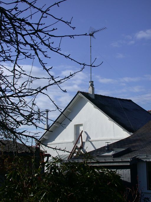 Vue actuelle de la partie supérieure de la façade postérieure.Immatriculation