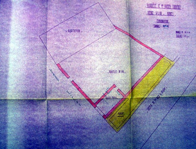 Plan de la propriété de Vacher-Corbiere, vers 1959. AM Vannes 1O216.Immatriculation