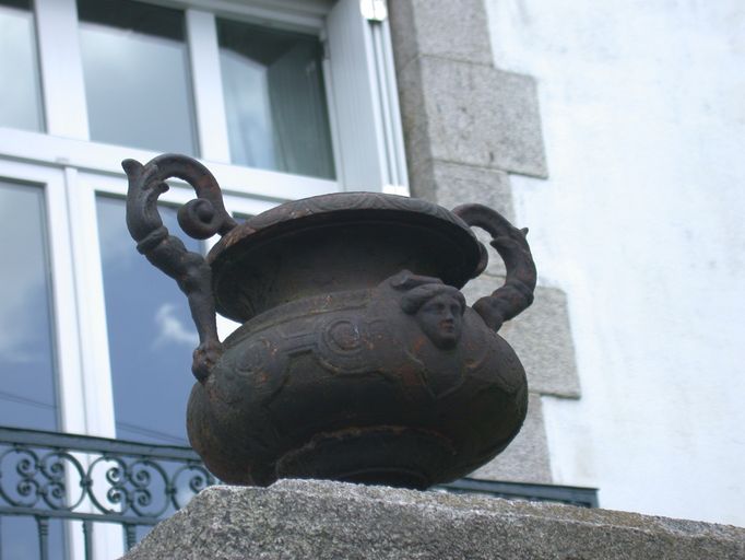 Pot à fleurs surmontant le pilier de clôture des maisons.Immatriculation
