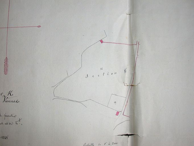 Extrait de la section G du plan parcellaire cadastral de 1844, 22 septembre1865. Fonds privé.Immatriculation