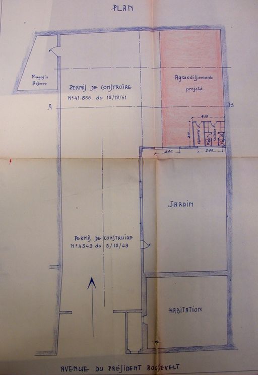Plan d'agrandissement du garage Kergosien, 1962. AM Vannes 1G59.Immatriculation