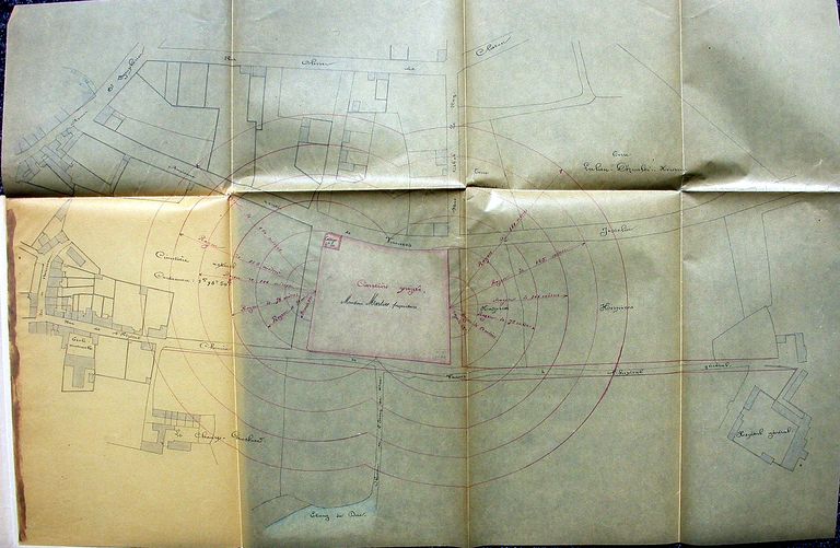 Plan parcellaire du nouveau cimetière dressé par le directeur de la voirie, R. Ryo. 1er juillet 1897. (AD56 2O 260/16).Immatriculation