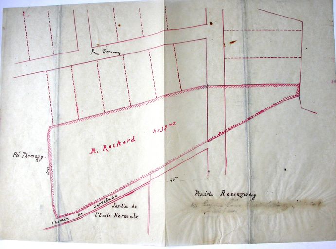 Plan de la parcelle de la ferme de la Madeleine, sans date, plan sans doute annexé à l'acte de vente de 1895. Archives privées.Immatriculation