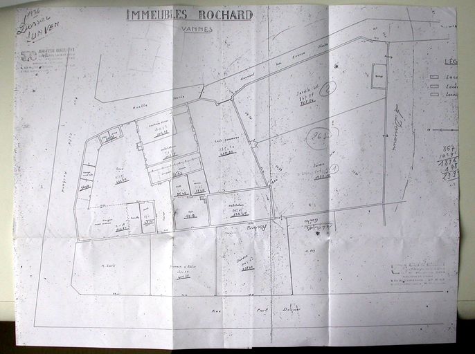 Plan de masse de la ferme de la Madeleine, par Lunven. 1936. Archives privées.Immatriculation