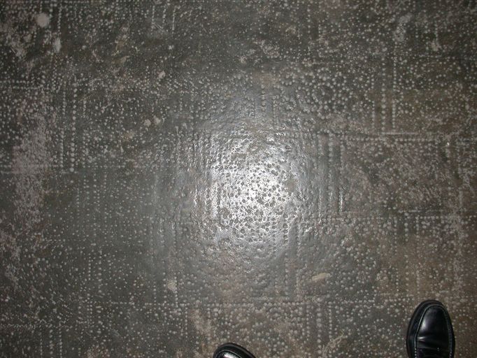 Vue du ciment moulé du sol de la cave.Immatriculation
