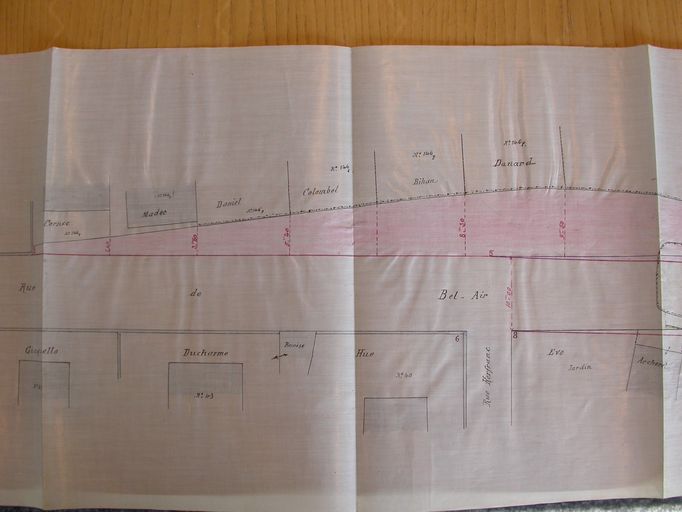 Plan des alignements à établir rue de Belair et entre la rue Foch et la rue de Bernus, plan par Rousseau, architecte de la ville, 31 août 1922, partie est. AD Morbihan 3O 2183.Immatriculation