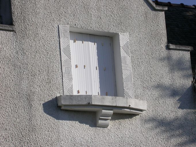 Détail de la lucarne à redents et seuil débordant soutenue par une console.Immatriculation