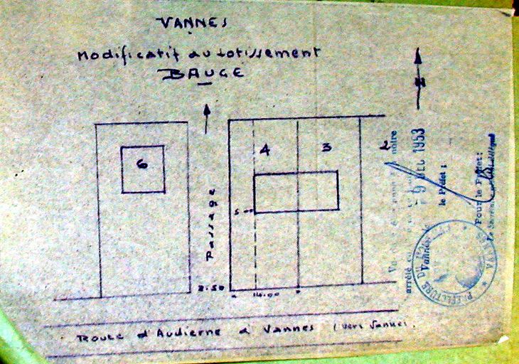 Lotissement Baugé, avenue de la Marne ; route Nationale 165 ; rue Tourville ; rue du Vincin (Vannes),