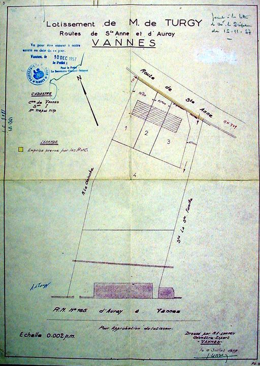 Plan du lotissement de Turgy au 24 avenue de la Marne, 1957 non réalisé. AM Vannes 1O221.Immatriculation
