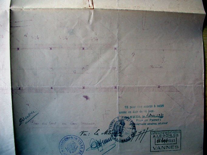 Plan du pont dit de la Coutume sur le ruisseau de Rohan, par Le Gohlès entrepreneur : vue par dessous. AD Morbihan 3O 2181.Immatriculation
