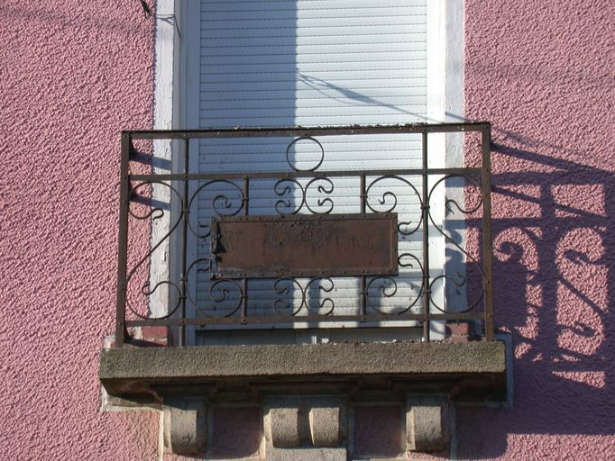 Vue du nom de la maison effacé sur le balcon.Immatriculation