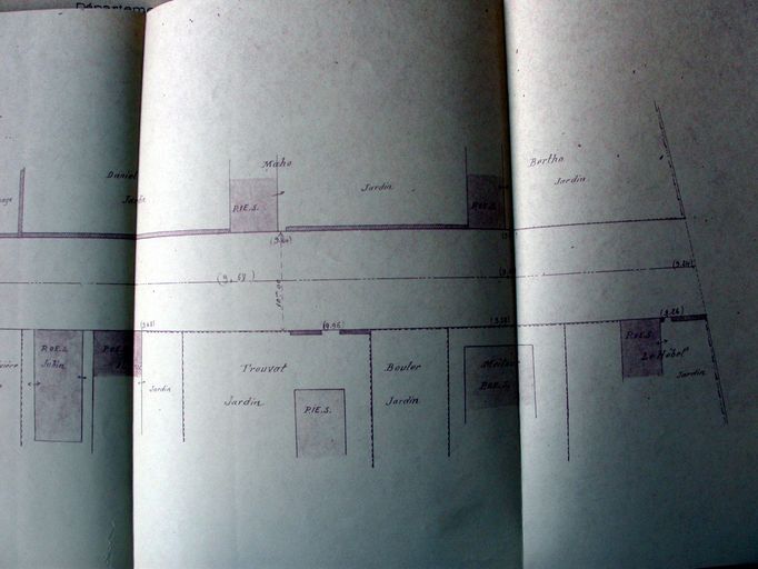 Projet de classement dans la voirie urbaine de la 2e impasse Guyot-Jomard. Plan de Thiévard, 14 octobre 1931. Partie sud. AD Morbihan 3O2182.Immatriculation