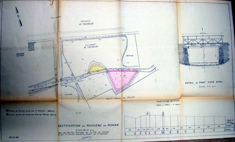 Plan de rectification du ruisseau de Rohan, 1958. AM Vannes 1O221.Immatriculation