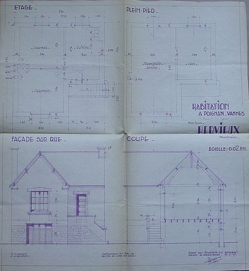 Plan de la maison Hervieux par Perrin, 1939. AM, Vannes 5 I 162.Immatriculation