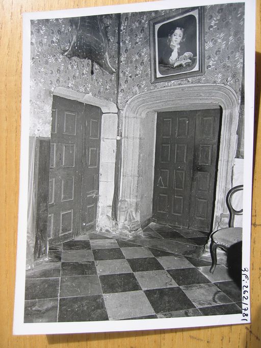 Rez-de-chaussée, hall d'entrée vers 1975 : accès au salon et à la cage d'escalier. AD, Morbihan 3Fi262/781.Immatriculation