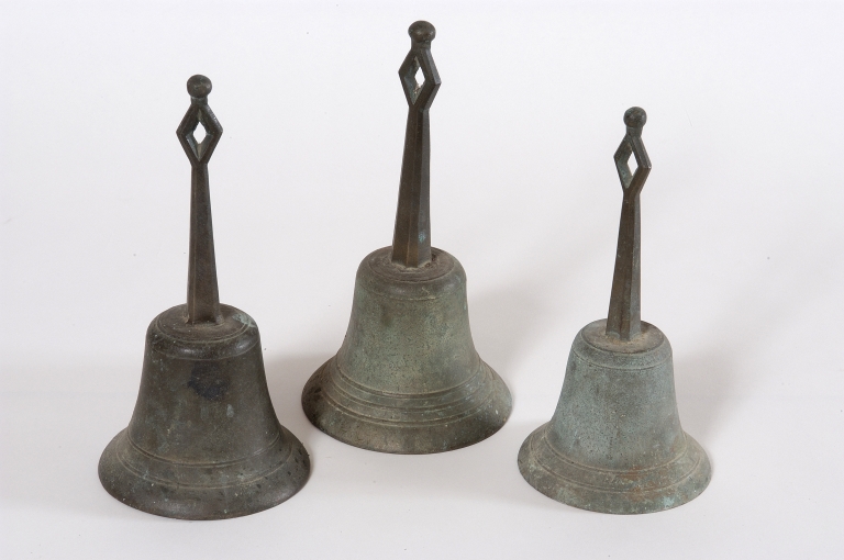 Ensemble de 5 cloches à main, place Ernest Lemoine (Bieuzy fusionnée en Pluméliau-Bieuzy en 2019),