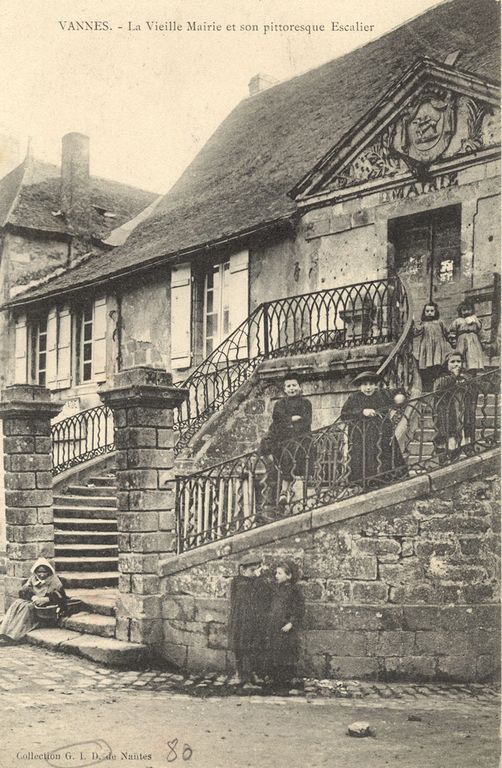 La vieille mairie et son pittoresque escalier. Carte postale ancienne. Collection G.I.D., Nantes. Fonds privé.Immatriculation