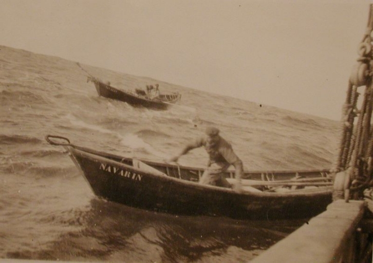 Le doris du Terre-Neuvier Navarin, accostant le long du bordImmatriculation