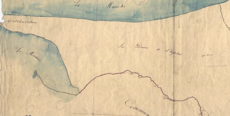 Sables-d'Or-les-Pins. Le site, alors dénommé dunes de l'Hôpital, d'après le cadastre de 1826 (AD 22)Immatriculation