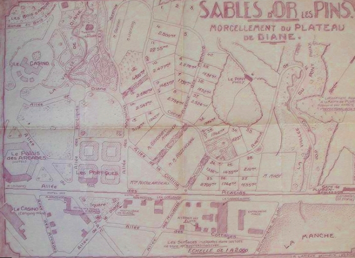Sables-d'Or-les-Pins. Le morcellement de la station : le plateau de Diane, 25 mars 1929 (BM Dinan)Immatriculation