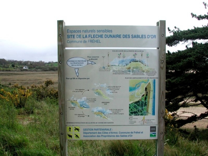 Panneau d'interprétation du site de la flèche liitorale à pointe libre de Sables-d'OrImmatriculation