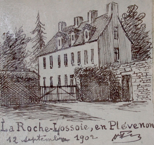 Vue générale du manoir de la Roche-Lossoie en 1902 d'après un croquis du vicomte Henri Frotier de La Messelière (AD 22)Immatriculation