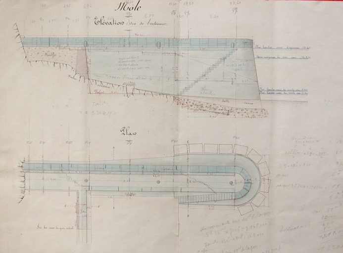 Plan, élévation et détails du nouveau môle, 1885 (AD 22)Immatriculation