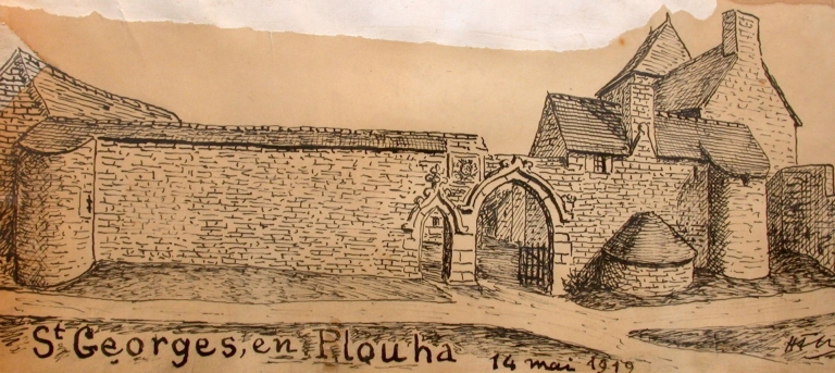 Vue générale du manoir en 1919 d'après un croquis du vicomte Henri Frotier de La Messelière (AD 22)Immatriculation
