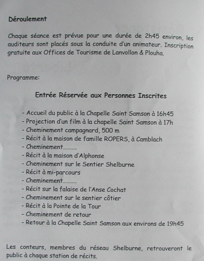Déroulement du circuit d'interprétation Résistance et Liberté du réseau Shelburn (plaquette du circuit édité par la Communauté de communes de Lanvollon-Plouha)Immatriculation