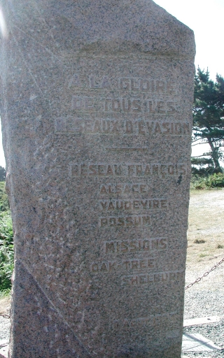 Détail de la stèle commémorative : texte gravé à la gloire des réseaux d'évasionImmatriculation