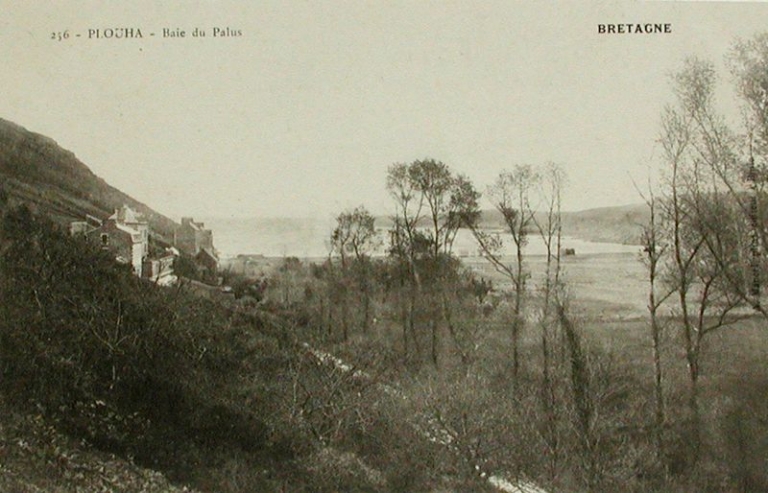 La baie du Palus, au 1er quart du 20ème siècle, avant les aménagements balnéaires et touristiques du front de mer : espaces boisés, marais littoral, cordons de galets (AD 22 Fi)Immatriculation
