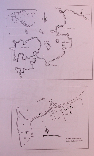 Localisation du site de l'atelier de bouilleur de sel de Landrellec (M.Y.Daire, M. Le Brozec, 1994)Immatriculation