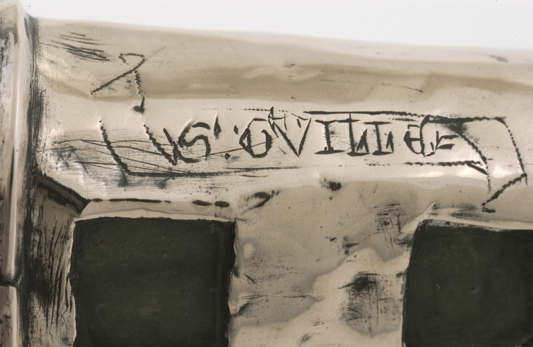Bras-reliquaire : détail des inscriptionsImmatriculation