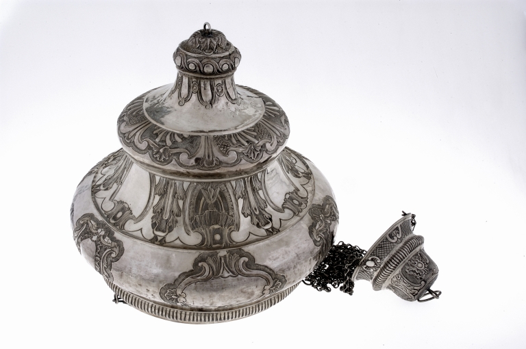 Chandeliers d'autel (6), croix d'autel, lampe de sanctuaire,