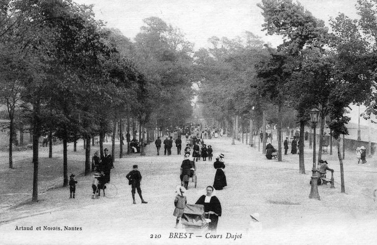 Vue de Brest : promenade du Cours Dajot (aménagée en 1769 par le directeur des fortifications Dajot). Carte Postale (Artaud et Nozais, Nantes)Immatriculation