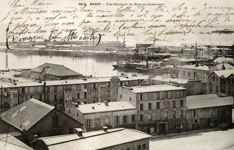 Vue de Brest : le port de commerce. Carte postaleImmatriculation