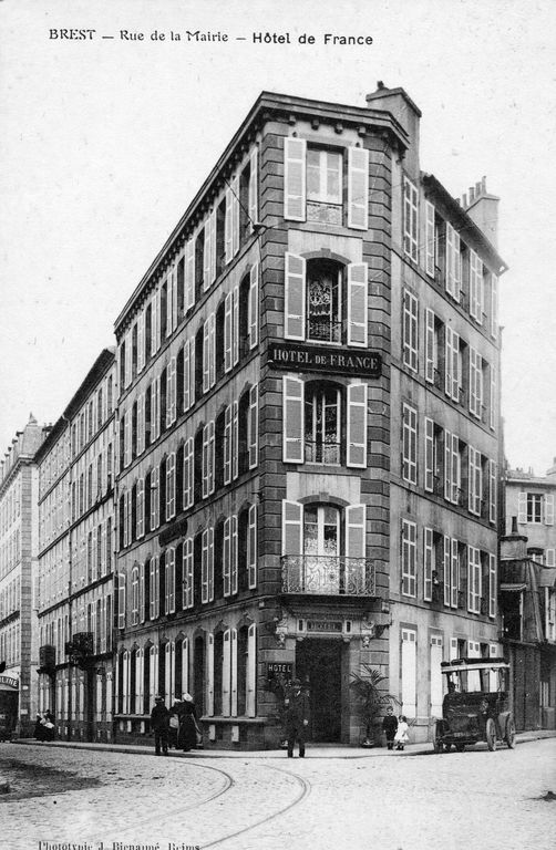 Vue de Brest : l'hôtel de France, carte postale (Phototypie J. Bienamé, Reims)Immatriculation