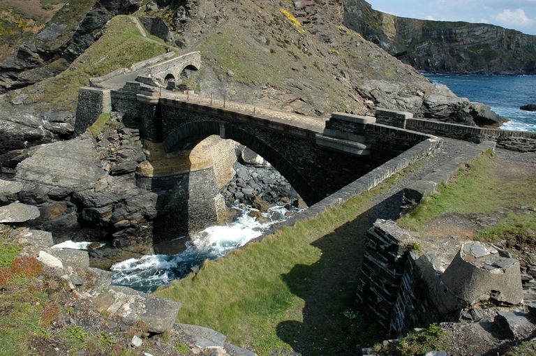 Vue du pont à une seule arche en appareil de schiste renforcé par une maçonnerie en grès de l'îlot des Capucins. Il porte au sud la date de 1861 et les lettres G M pour Génie MaritimeImmatriculation