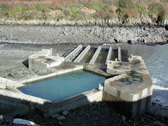 Vue du fort du Mengant depuis le môle construit en 1877 : partie basse du funiculaire, môle de translationImmatriculation