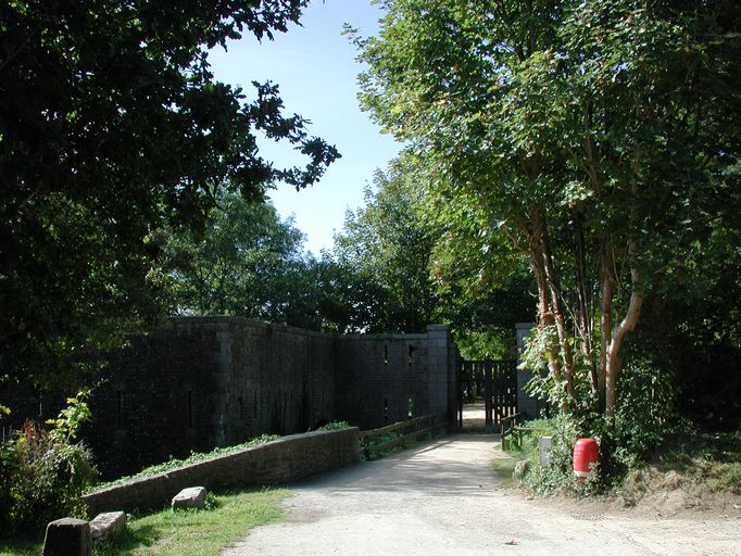 Vue du fort du Dellec : entrée monumentale et enceinte percée de créneaux de fusilladeImmatriculation