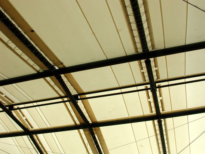 Vue du fort du Dellec : structure légère et toile assurant l'étanchéité de l'espace de la caserne aujourd'hui réhabilitéImmatriculation