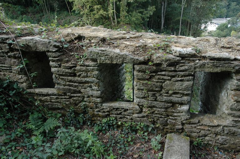 Vue de l'ouvrage à cornes de Quéliverzan : parapet des créneaux de fusilladeImmatriculation