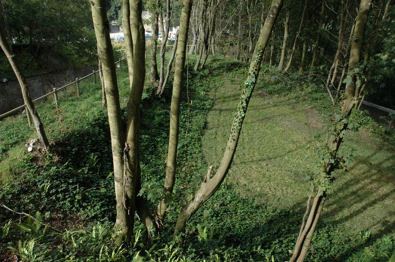 Vue de l'ouvrage à cornes de Quéliverzan : ancienne plateforme d'artillerieImmatriculation