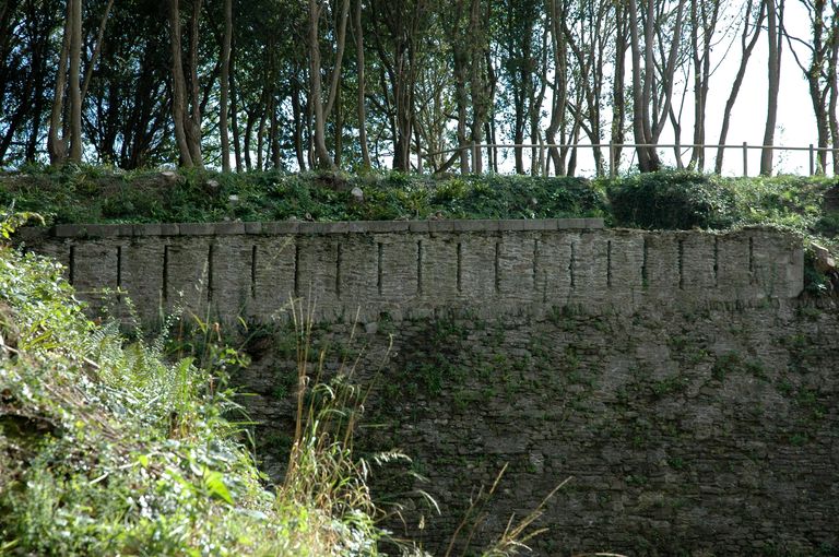 Vue de l'ouvrage à cornes de Quéliverzan : créneaux de fusilladeImmatriculation