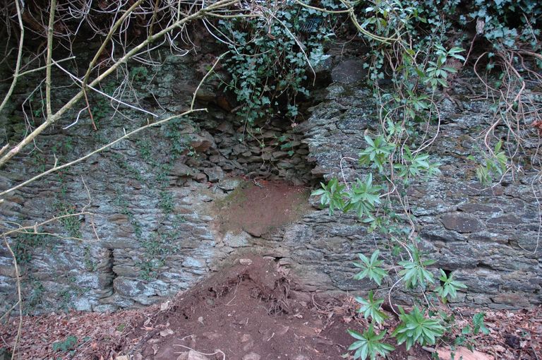 Mur d'escarpe (dehors : ?) situé dans le bois en avant de l'ouvrage fortifié de QuéliverzanImmatriculation