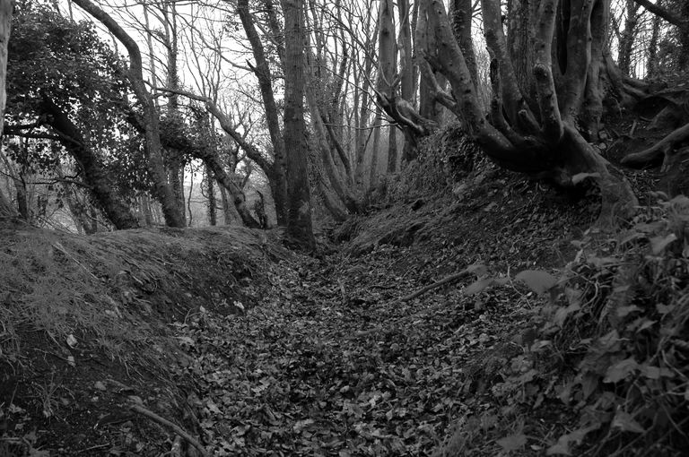 Vue des vestiges du réseau de tranchées situé dans les bois (état en 2005)Immatriculation