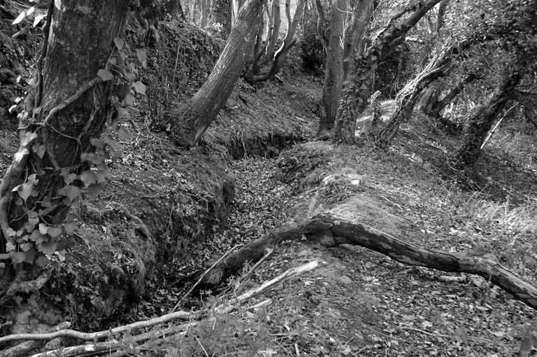Vue des vestiges du réseau de tranchées situé dans les bois (état en 2005)Immatriculation