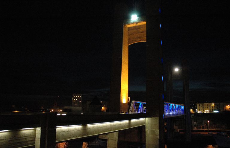 Vue générale du pont de Recouvrance la nuit : mise en lumièreImmatriculation